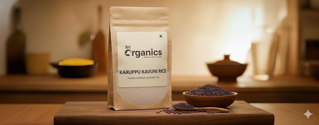 Premium organic Karuppu kavini rice from Sri Organics, sourced directly from farms.